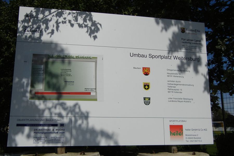 Die im Jahr 2011 neu sanierte Weitersburger Sportanlage bietet neben Spielfeld und Kleinspielfeld auch eine Laufbahn, Sprunggrube und einen Kugelstoßkreis. Die Spielfelder wurden mit einem Kunstrasen ausgestattet und ebenso wurde die Flutlichtanlage erneuert. Umkleideräume, Schiedsrichterkabine, WC-, Wasch- und Duschräume sind in der benachbarten Sporthalle vorhanden. Im Vereinsheim auf der Sportanlage befinden sich ebenfalls Toiletten.